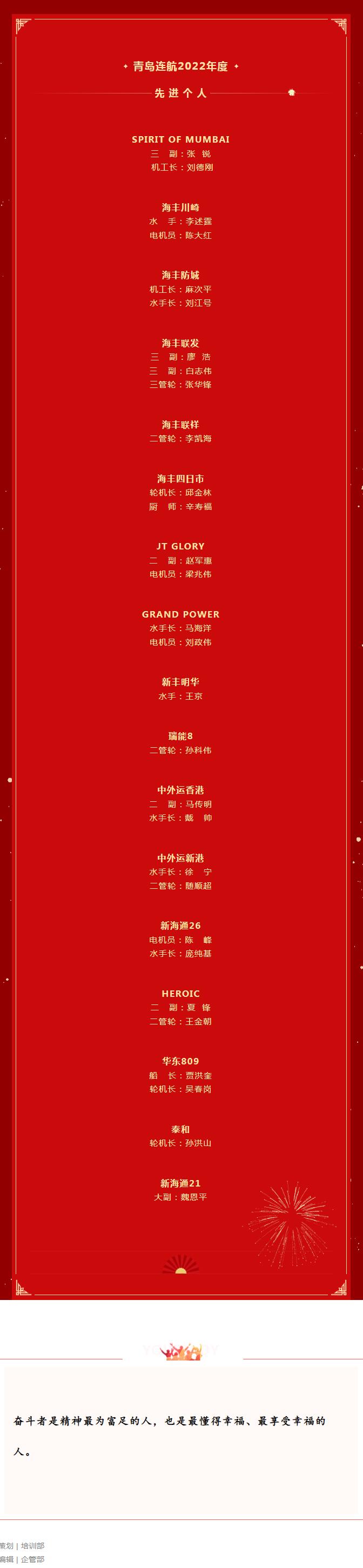 隆重表彰 │ 2022年度青島連航明星船舶和先進(jìn)個人