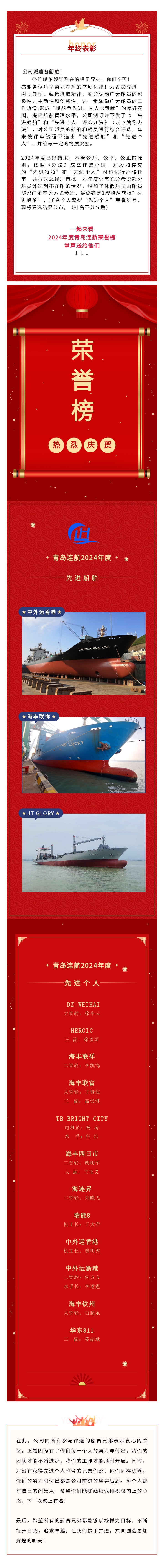隆重表彰 │ 2024年度青島連航先進(jìn)船舶和先進(jìn)個人